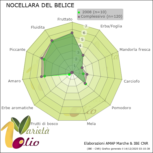 Profilo organolettico e composizione in acidi grassi determinato dall’analisi di 10 campioni di NOCELLARA DEL BELICE.