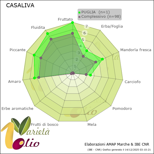 Profilo organolettico e composizione in acidi grassi determinato dall’analisi di 1 campioni di CASALIVA.