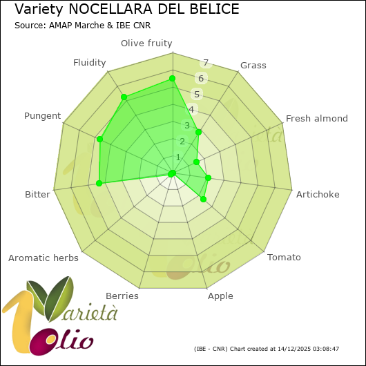 Sensory profile and fatty acid composition defined by 120 EVOO samples of NOCELLARA DEL BELICE in 19 years and come from 7 region.