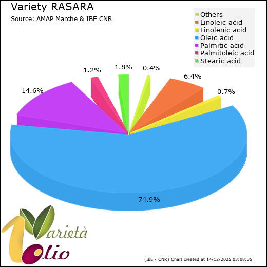 Sensory profile and fatty acid composition defined by 1 EVOO samples of RASARA in 1 years and come from 1 region.